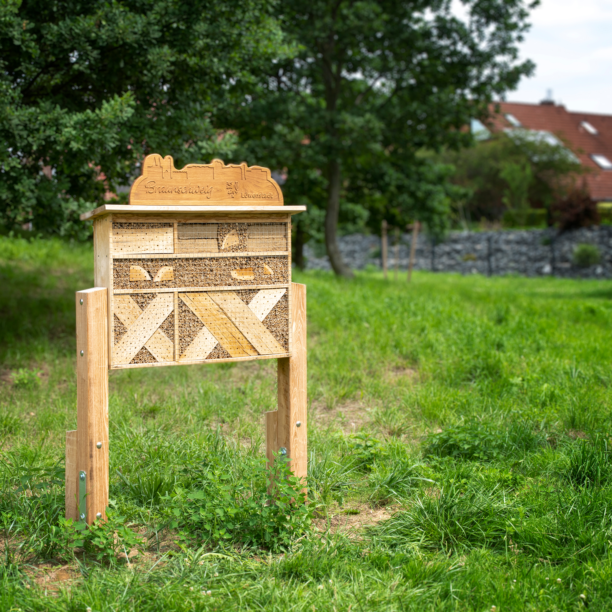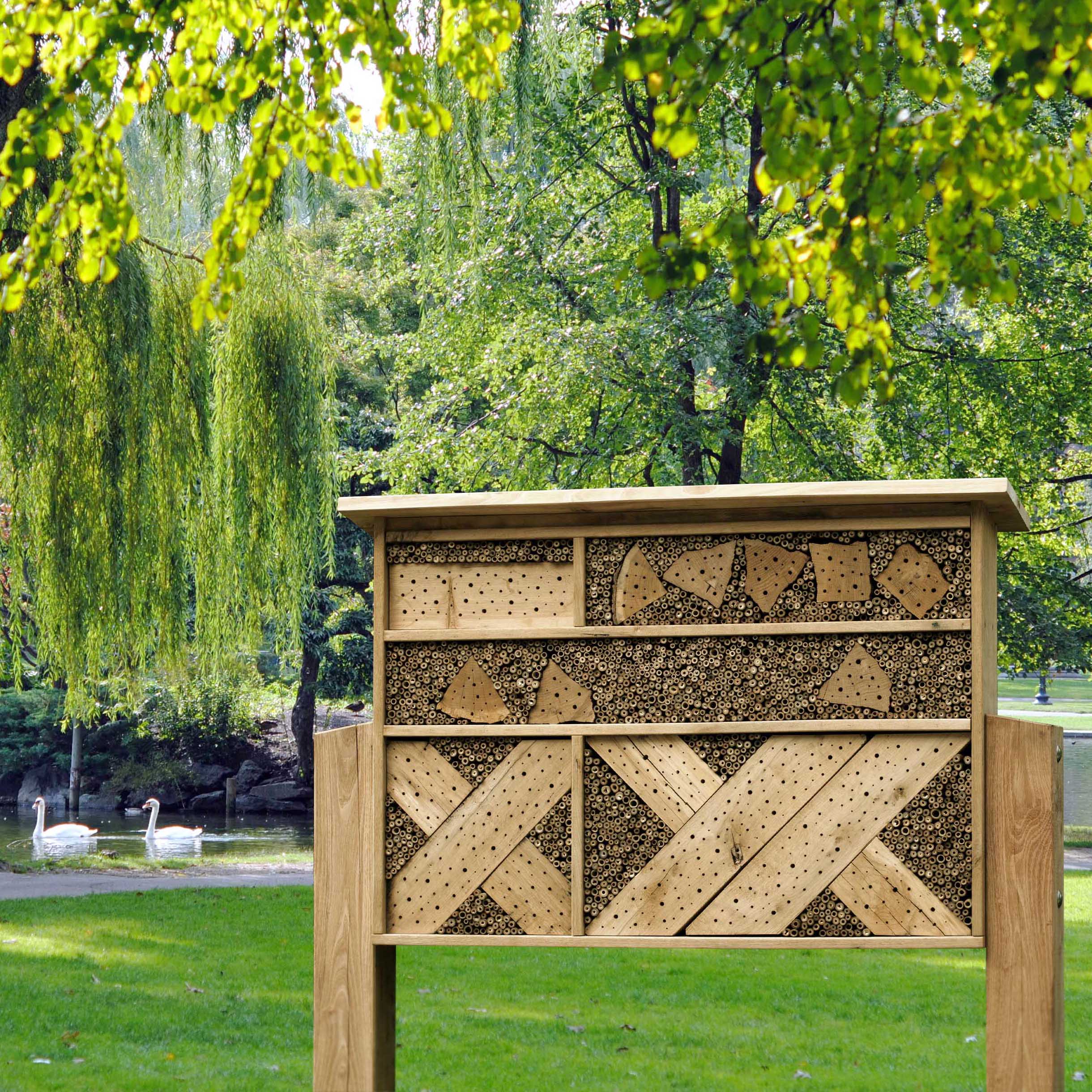 • Hochwertiges, langlebiges XXL-Insektenhotel aus Robinien- und Eichenholz, speziell für den öffentlichen Raum und große Gärten entwickelt