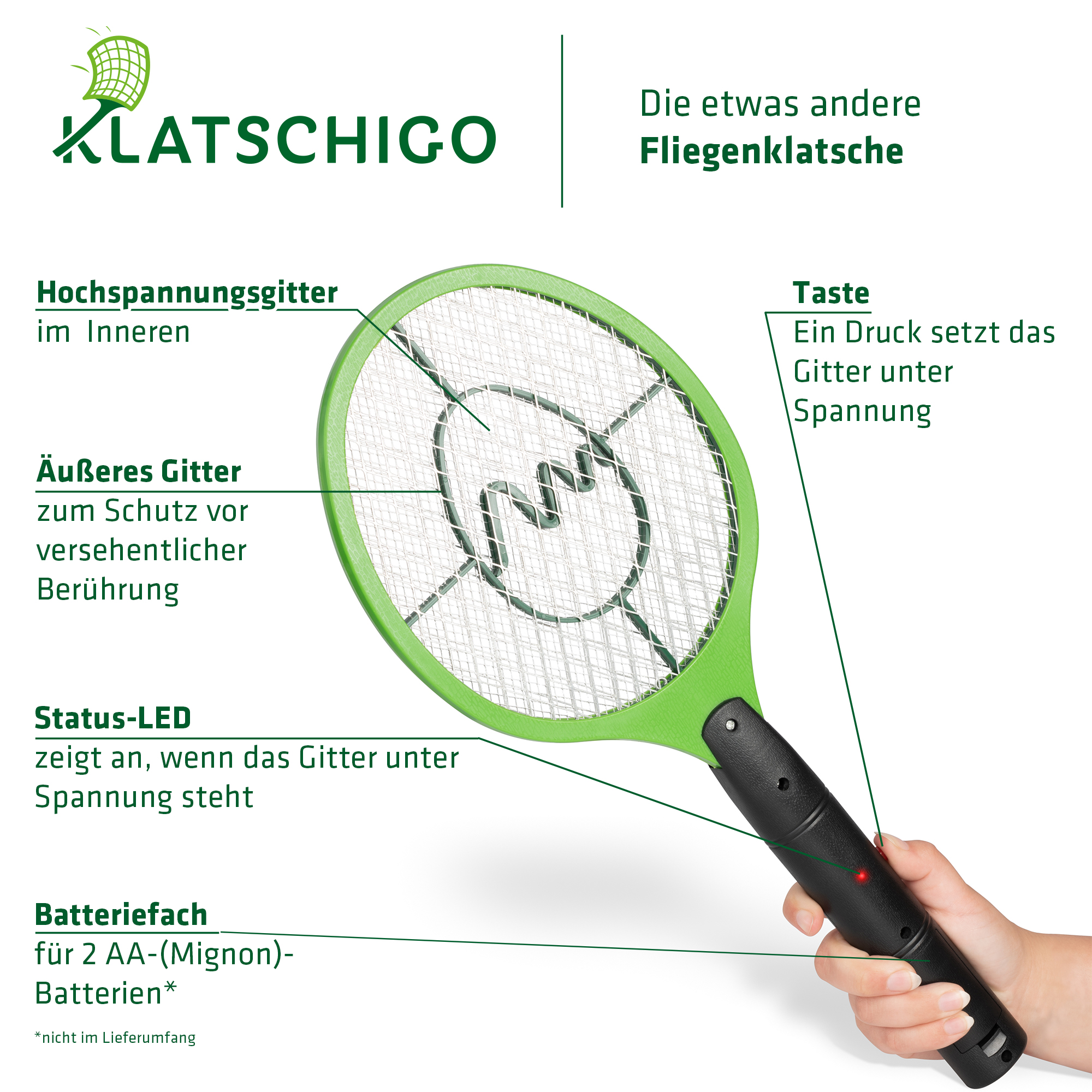 Produktinformationen "Elektrische Fliegenklatsche Klatschigo | Fliegen & Mücken gezielt bekämpfen"