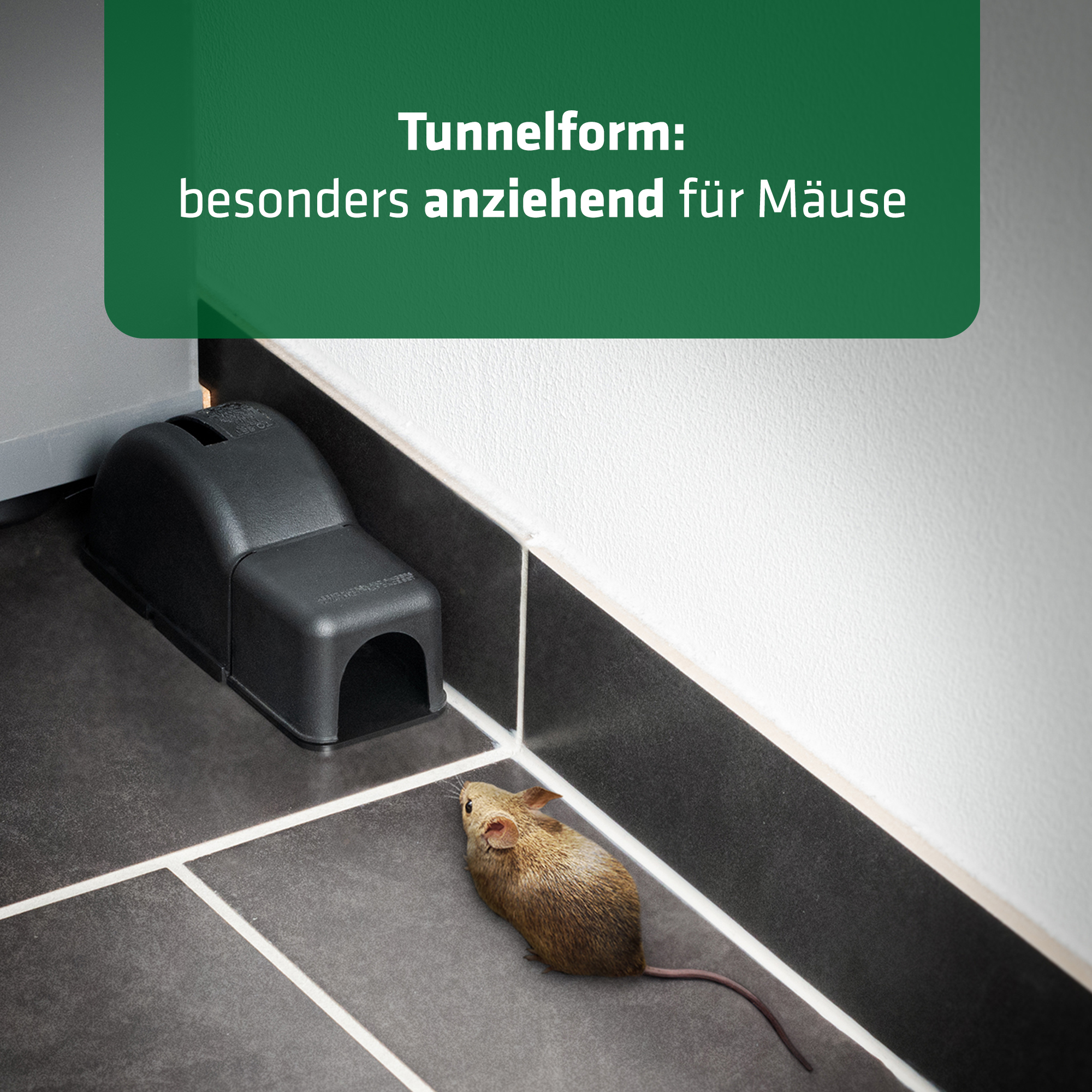 Die Spannhebelposition verrät Ihnen schon von weitem, ob die Falle ausgelöst hat. Gefangene Mäuse lassen sich durch erneutes Drücken des Hebels berührungsfrei wieder aus der Tunnelfalle entfernen. Die Mausefalle ist aus Kunststoff gefertigt. So lässt sie sich leicht reinigen und immer wieder verwenden.