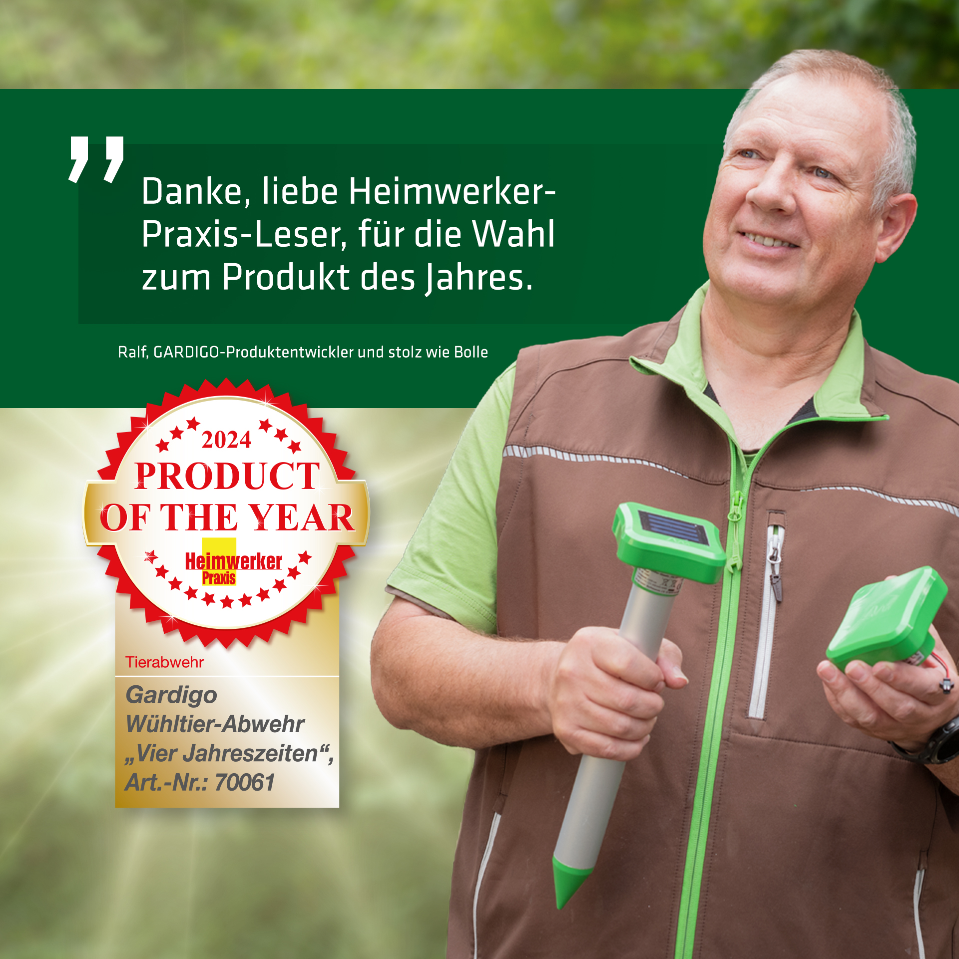 Zudem wurde das Gerät von den Lesern zu einem der „Produkte des Jahres 2024“ in der Kategorie „Tiervertreiber“gewählt. Vielen Dank, liebe Heimwerker Praxis-Leser!